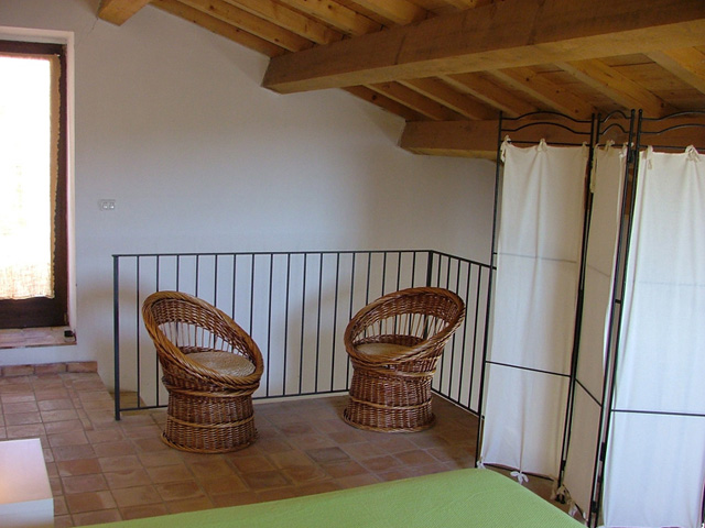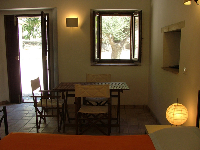 Gli appartamenti situati al centro della tenuta, sono stati ricavati dalla ristrutturazione di parte dei fabbricati dell'antica masseria. Muri in pietra, pavimenti in cotto, tetto con travi in legno e camini contribuiscono a rendere confortevole il soggiorno sia d'inverno che d'estate. |